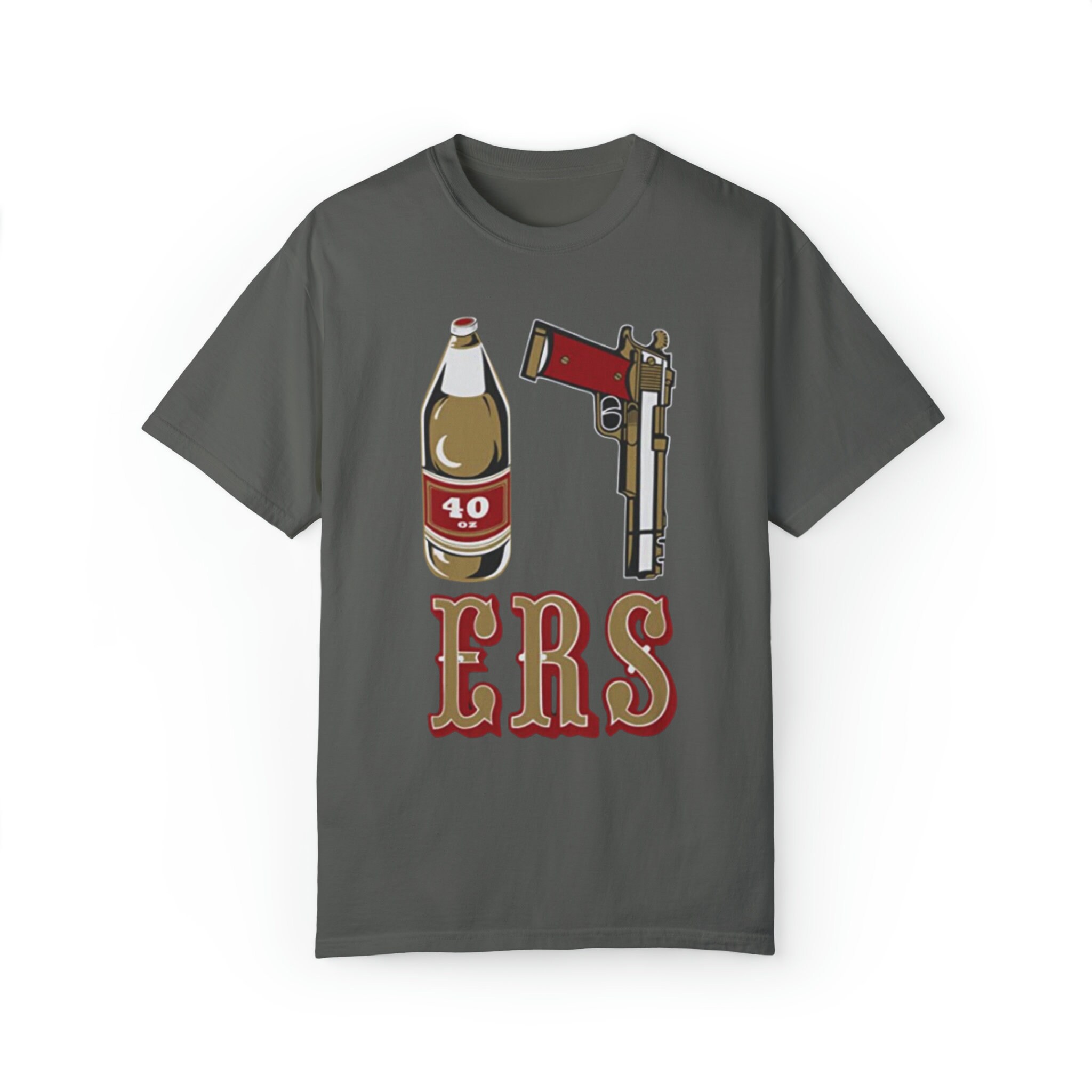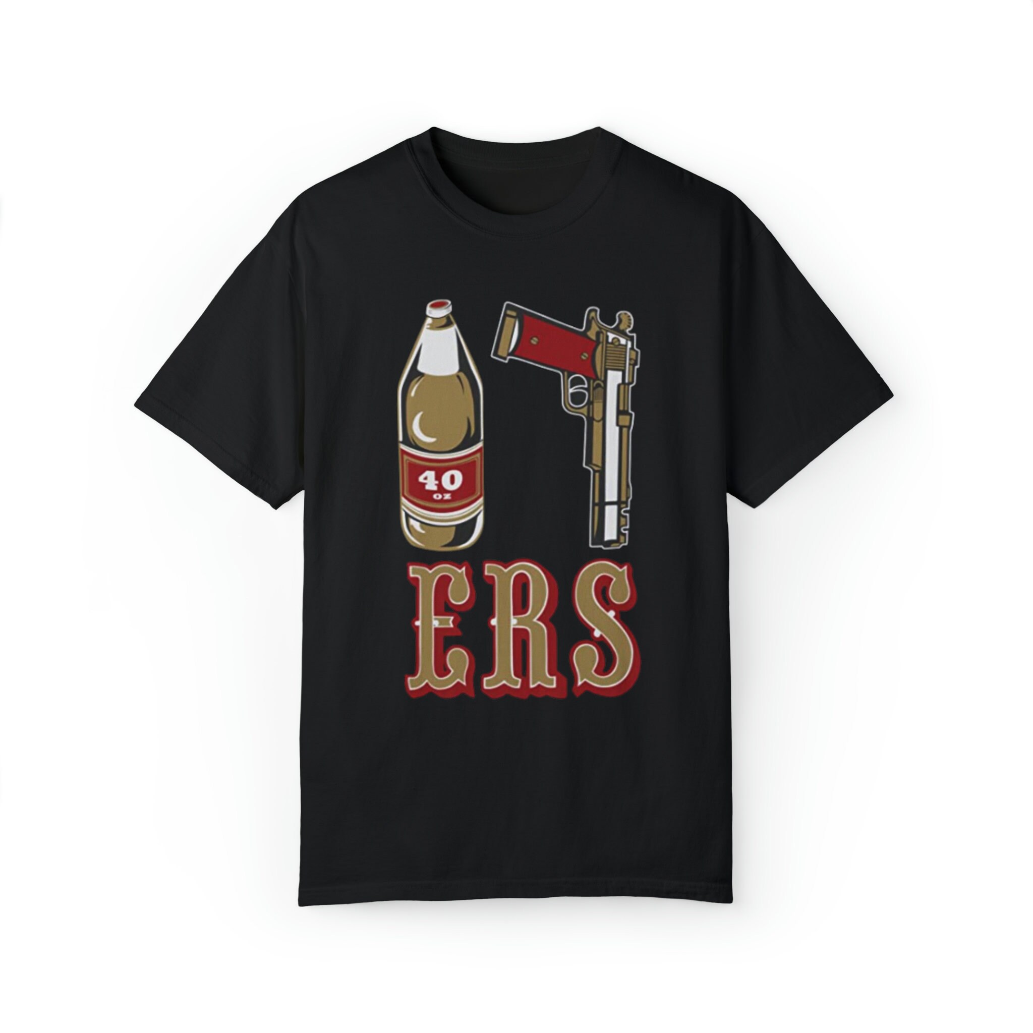 Mens Golden Empire Shirt 40 Oz Bottle 9 MM Gold Gun ERS California T-shirt