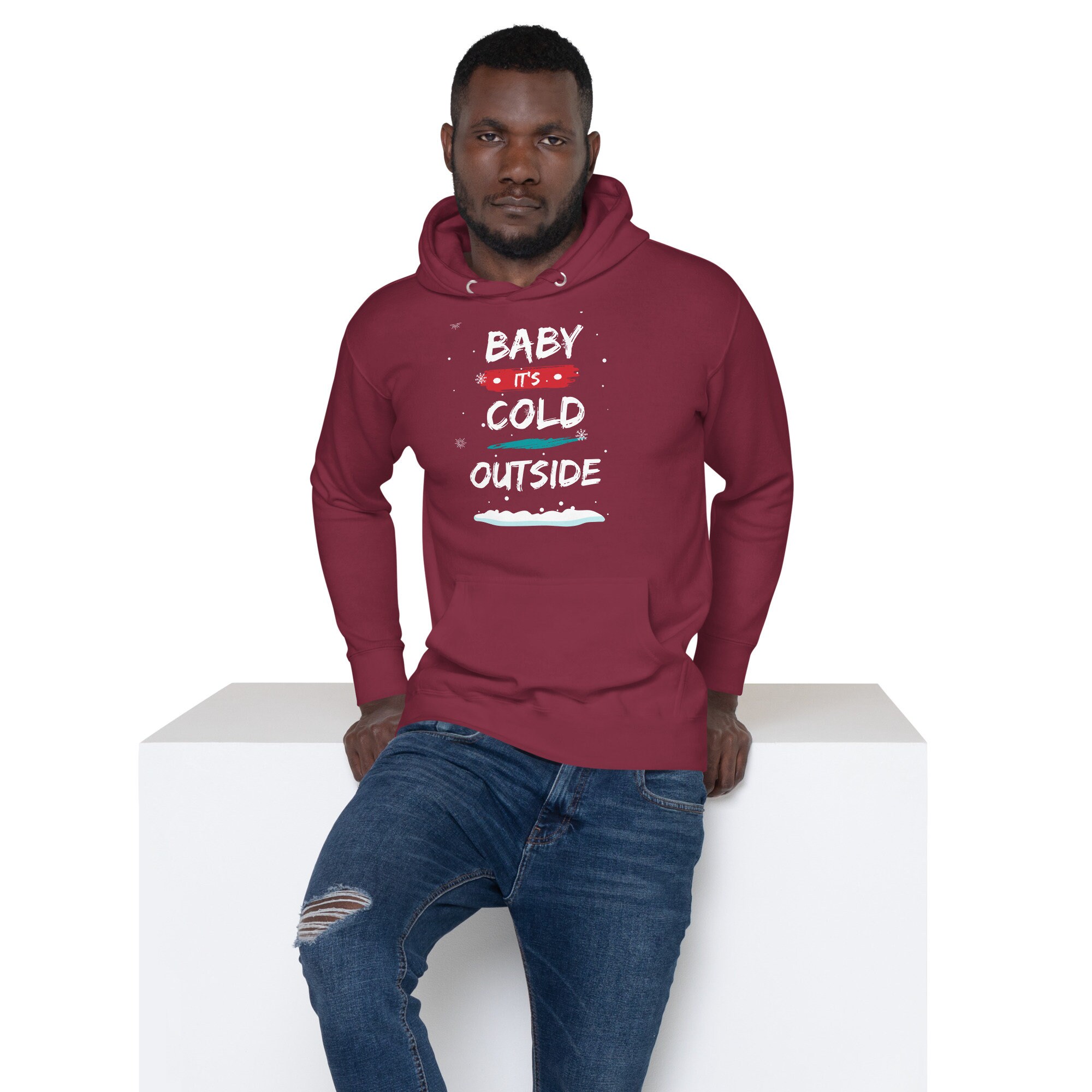 #sweat baby it's cold outside unisex hoodie. You won't regret purchasing this unique piece of streetwear with a practical front pocket and a hood to keep you warm.