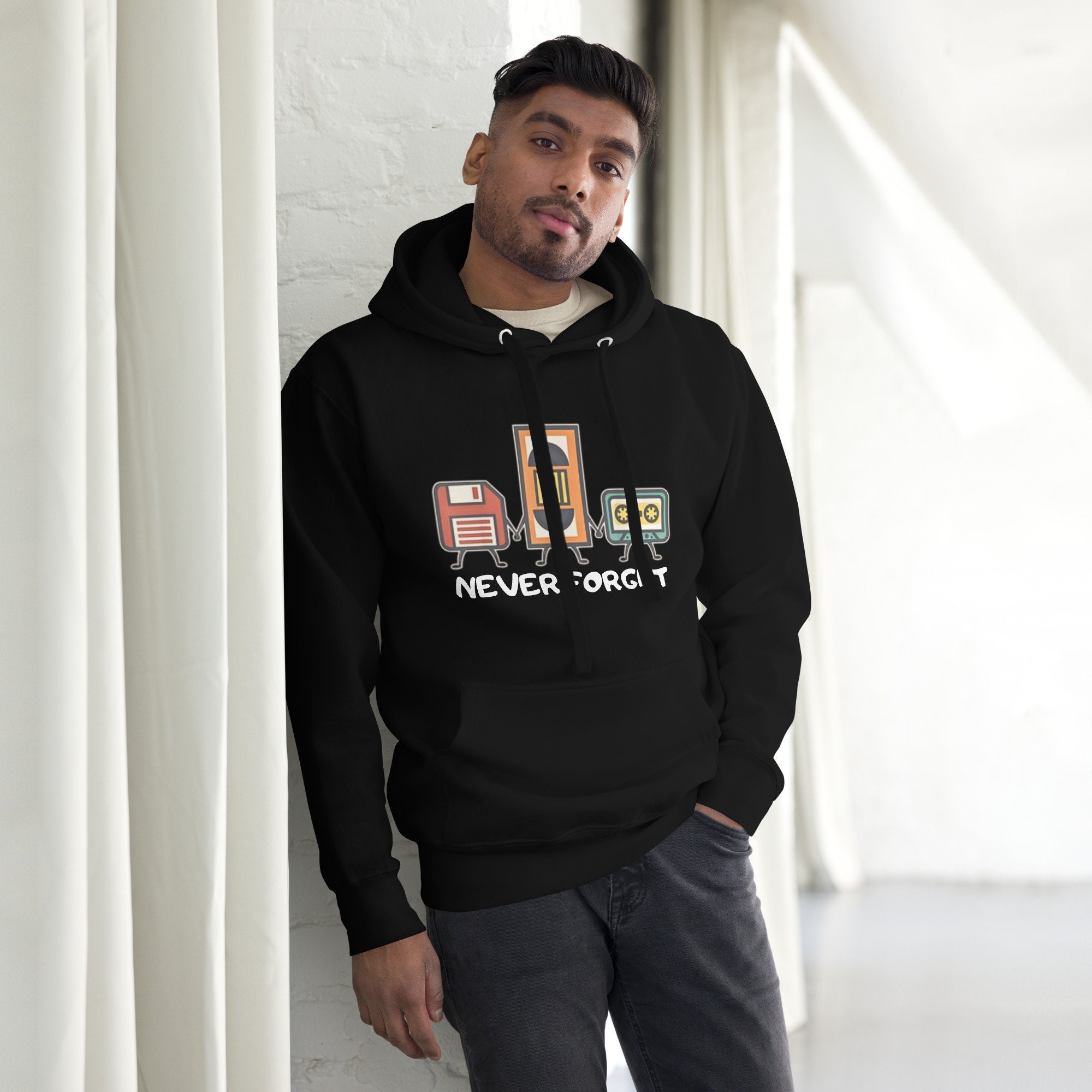#sweatshirt Never Forget Cassette Tape VHS Gamer Old School Mens Very Funny sweatshirt. You won't regret purchasing this unique piece of streetwear with a practical front pocket and a hood to keep you warm.